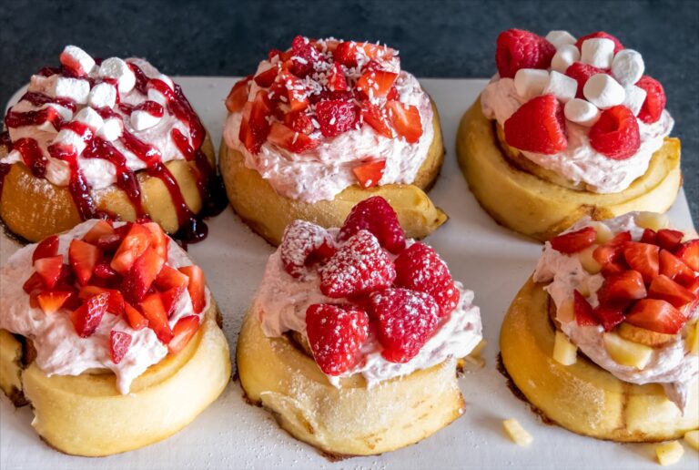 - Old Skool cinnamon roll – A classic, fluffy and warm cinnamon roll with vanilla frosting